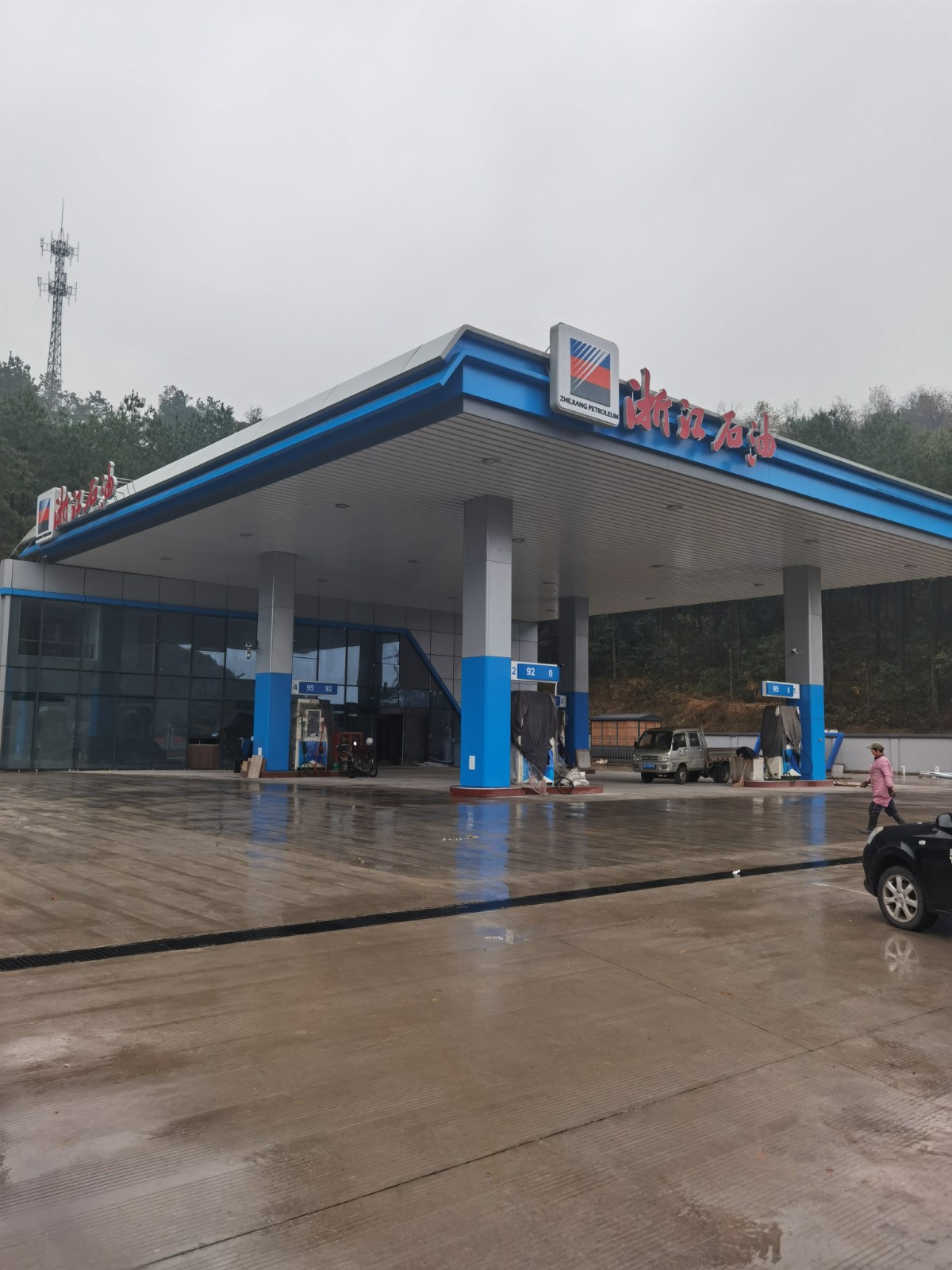 義烏市浙石油綜合能源銷售有限公司后宅前后傅加油站是由義烏市浙石油綜合能源銷售有限公司投資新建的綜合供能服務站,位于義烏市后宅街道S103省道東側、稠下線南側地塊。本項目用地面積為3526.17m2,總建筑面積758.51m2,建筑占地面積557.52m2,為新建項目。 本項目主要建設內容:新建二層站房建筑面積375㎡,新建加油罩棚建筑面積288㎡;埋地罐區設置4臺30m3SF型雙層復合埋地油罐(92#、95#、95#、92#),1臺50m3SF型雙層復合埋地油罐(0#柴油),油品儲罐總容量為145m3(柴油罐折半計入),設置4臺雙油品四槍加油機,加油區塊根據《汽車加油加氣站設計與施工規范》(GB50156-2012,2014年版)劃分,本站為二級加油站。站內新建1個轎車快充充電樁(2個充電車位),預留1個充電樁(預留2個充電車位),充電功率為120kW,根據《綜合供能服務站建設規范》(DB33/T2136-2018)劃分,充電區塊為IV級充電區塊,按照地理位置劃分為“縣級市、縣級城區綜合供能服務站”;綜上,本站為二級綜合供能服務站。