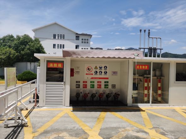 加油區(qū)設(shè)置加油罩棚,罩棚下設(shè)置3臺(tái)雙油品四槍潛油泵式加油機(jī)(汽油)和1臺(tái)雙油品雙槍加油機(jī)(柴油);埋地罐區(qū)設(shè)有5只臥式埋地單層油罐(采用防滲罐池),其中30m3汽油罐4只、30m3柴油罐1只,折算后油罐總?cè)莘e135m3(柴油罐折半計(jì)入),根據(jù)《汽車加油加氣加氫站技術(shù)標(biāo)準(zhǔn)》GB50156-2021的相關(guān)規(guī)定,該站屬于二級(jí)加油站。加油站已安裝汽油卸油和加油油氣回收系統(tǒng)。